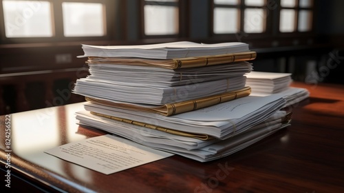 A photo of a stack of legal documents on a desk