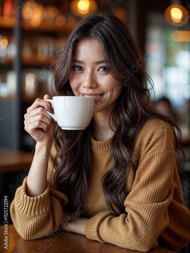 A Photo of a Woman Enjoying her Leisure time with Coffee