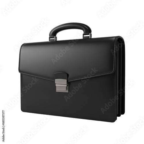 A photorealistic 3D render of a black leather briefcase on a transparent background.