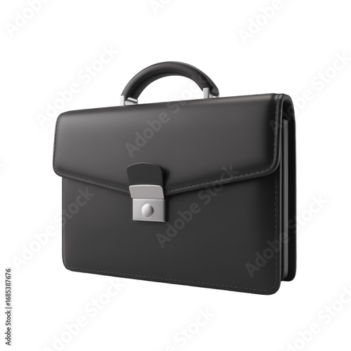 A photorealistic 3D render of a black leather briefcase on a transparent background.