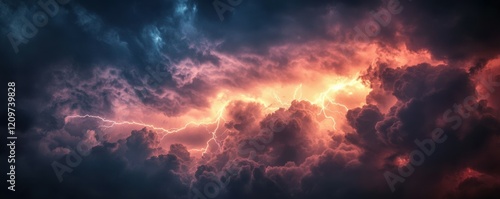 A photorealistic image of a summer thunderstorm, its lightning bolts illuminating the dark clouds and creating a dramatic spectacle of nature's power.