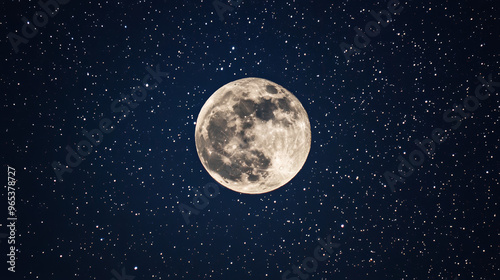 A picture shows a moon shining brightly in the night sky, with lots of tiny stars around it.