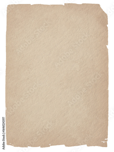 A piece of aged, blank paper with torn edges. It has a beige color and a slightly rough texture.