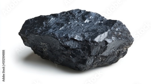 A piece of coal isolated on a white background, showcasing its dark, rugged texture and natural form.