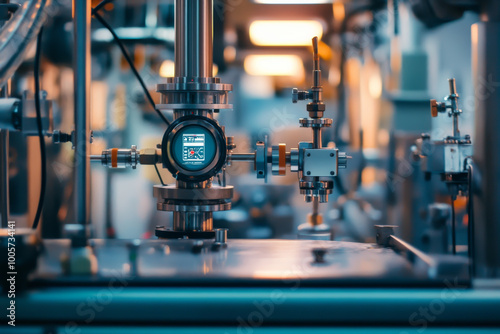 A piece of equipment with a screen that says "3" on it. The image is blurry and has a moody, industrial feel