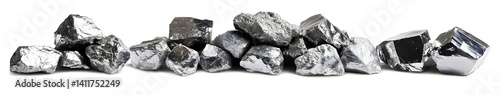 A pile of aluminum ore rocks featuring their natural, reflective surfaces and solid textures, ideal for geological analysis and mineral collecting, is set against a transparent background in a png