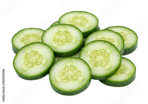 A pile of fresh cucumber slices isolated on transparent background