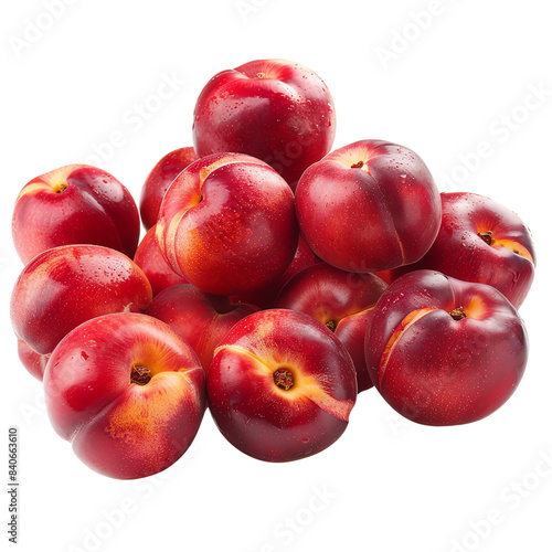 A pile of fresh, juicy nectarines with a vibrant red color, perfect for healthy eating and summer snacks. Isolated on a white background.