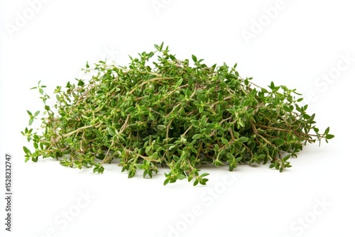 A pile of fresh thyme sprigs, isolated on white background