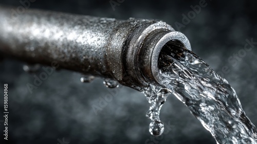 A pipe is leaking water, and the water is dripping down. The water is coming out of the pipe and is wet