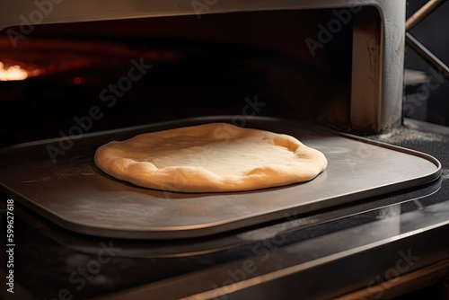 a pizza stone being heated in the oven, ready for the dough to be placed on top, created with generative ai