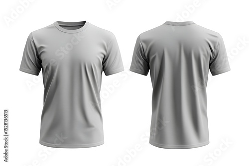 a plain light gray crew neck t-shirt shown from front and back views, isolated on a pure white background