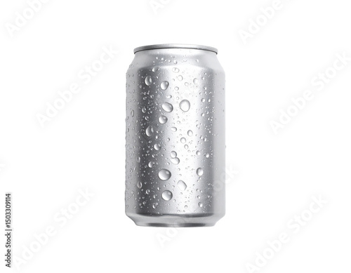 a plain silver soda can with water droplets
