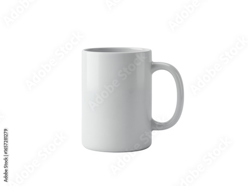 A plain white ceramic mug with a comfortable handle isolated on a transparent background for easy customization isolated on transparent background