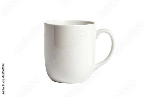 A plain white coffee mug on a transparent background, ideal for showcasing beverages or personalized designs.