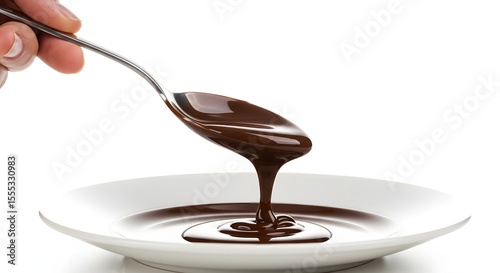 A Plate and a Hand Holding a Spoon Full of Melted Chocolate, Showcasing the Sweet Delight of Chocolate Day