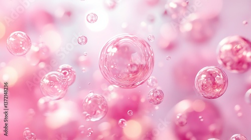 A playful blend of pink bubbles and spheres in a refreshing water setting, creating a colorful and bubbly. illustration