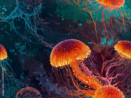 A playful jellyfish with textured patterns, dynamic shapes, and vivid colors for an energetic look.