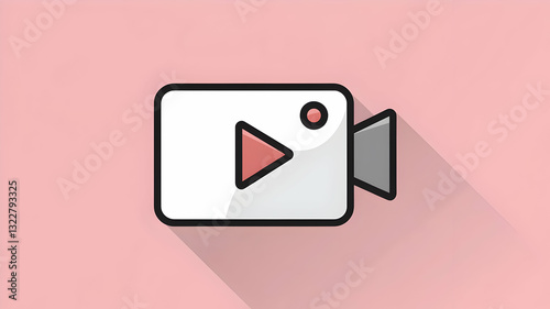 A Playful Video Camera Icon Ready To Record Your Precious Memories With A Soft Pink Background And A Long Shadow