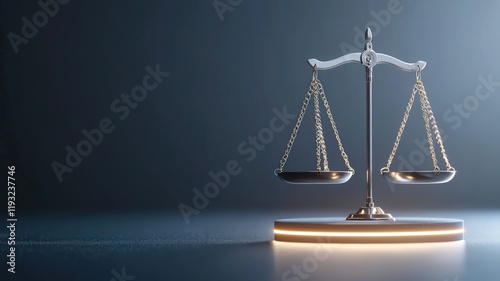 A polished metal scale balances evenly, symbolizing justice and fairness against a soft, illuminated background.