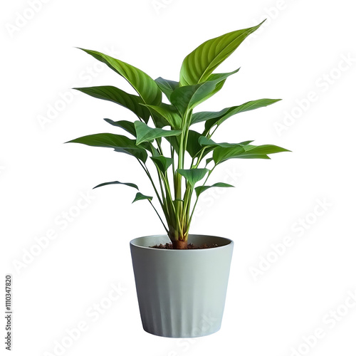A potted indoor plant with a biodegradable pot isolated on a solid colour background.