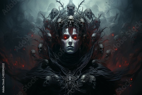 A powerful and fearsome necromancer, commanding legions of undead minions. - Generative AI