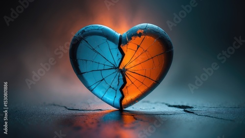 A powerful and touching image of a heart connected to shattered or cracked glass.
