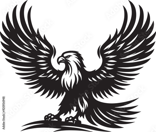 A powerful eagle silhouette in flight, wings spread wide with sharp, defined lines, symbolizing freedom and strength.