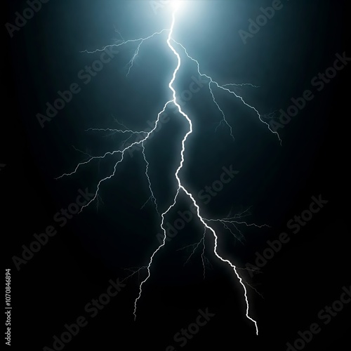 A powerful image of bright lightning, breaking through a dark turbulent sky. Electric lightning bolts with a dark background of dynamic natural energy concept