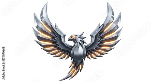 A Powerful Phoenix Emblem in Gleaming Silver, Symbolizing Rebirth and Strength, A Majestic Bird of Myth with Glowing Eyes
