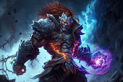 A powerful stormcrafter, who can stun and control enemy units with his abilities and manipulate the battlefield with his abilities. Digital art painting, Fantasy art, Wallpaper. Generative ai.