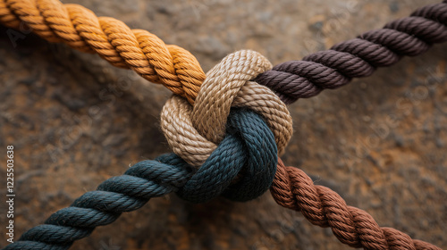 A powerful symbolic image of intertwined ropes in different colors and textures, forming an unbreakable knot that represents unity and strength in diversity.