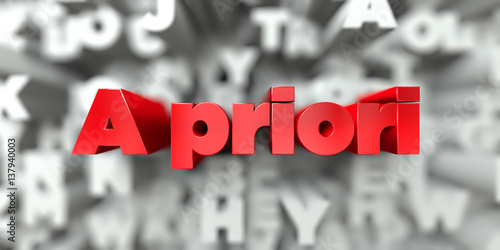 A priori - Red text on typography background - 3D rendered royalty free stock image. This image can be used for an online website banner ad or a print postcard.