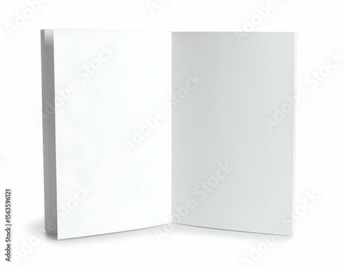 A pristine, open white booklet stands upright, ready for custom design and content on a clean background.