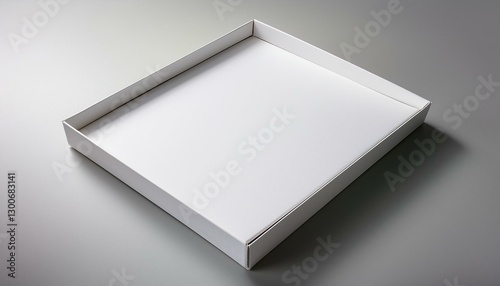 a pristine white mock up cardboard box displayed at a slight angle on a clean surface perfect for product packaging or branding presentations