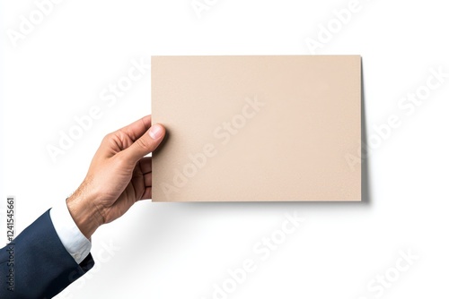 A professional hand holding a blank paper for presentations or documents.