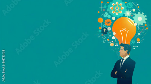 A professional man is positioned on the right side of the image, focusing on developing marketing campaigns with innovation. He exudes confidence and expertise as he works on his creative projects.