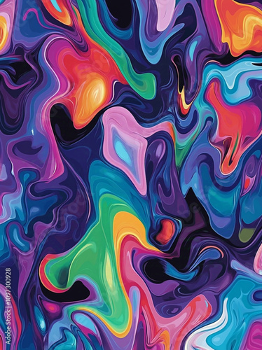 A psychedelic digital art piece featuring swirling patterns of vibrant colors, creating an abstract and mesmerizing background for design use.