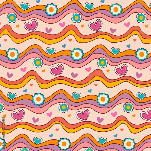 A psychedelic swirl of colors and shapes, perfect for a retro-inspired space, A groovy floral pattern that will transport you to a sunny summer day, A bold and colorful abstract design that is sure