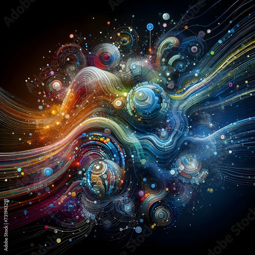 A pulsating visualization of globalization with different countries, cultures, and technologies connected by colorful lines and shapes