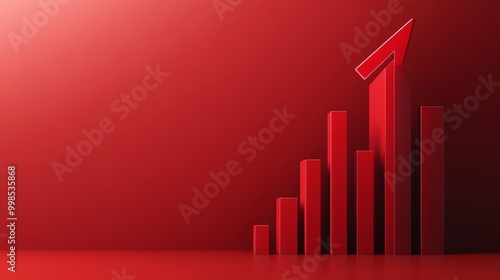 A purple background shows a 3D bar chart with an arrow pointing upwards. This represents growth and financial success, like a strong economy.