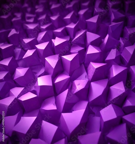 A purple geometric pattern composed of numerous triangular shapes, creating a visually striking and abstract design