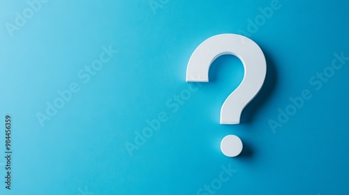 A question mark symbol represents help, information, and solutions. It's used for FAQs, quizzes, tests, surveys, support, and decision-making. The design features a simple cutout question mark on