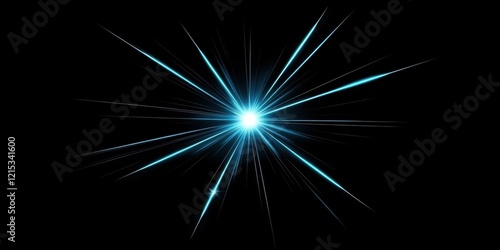 A radiant blue lens flare with a crisp edge, creating sharp, bright lines extending across a solid black background, perfect for a high-tech or futuristic theme