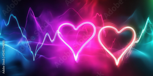 A radiant, colorful abstract background with pulsating neon heartbeats. The rhythmic, glowing patterns in deep sapphire, hot magenta, and bright turquoise create an energetic, futuristic, and visually