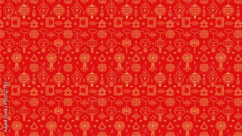 A Radiant Display of Lunar New Year Elegance The Exquisite Red and Gold Background Representing the Joyful Spirit of Tiongkok Celebrations