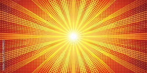 A radiant golden burst of light emerging from a central point surrounded by a swirling pattern of yellow and orange polka dots on a red background