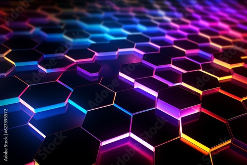A radiant neon spectacle, this digital abstract background teems with hexagonal motifs, inducing a futuristic vibe.