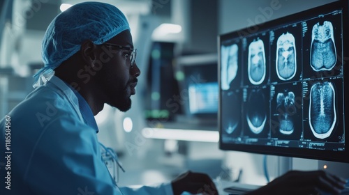 A radiologist examining a digital mammogram image on a high-resolution monitor in a modern imaging center