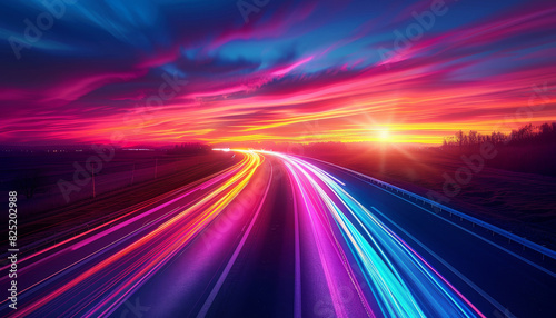 A rainbow is seen on a road with a sunset in the background by AI generated image